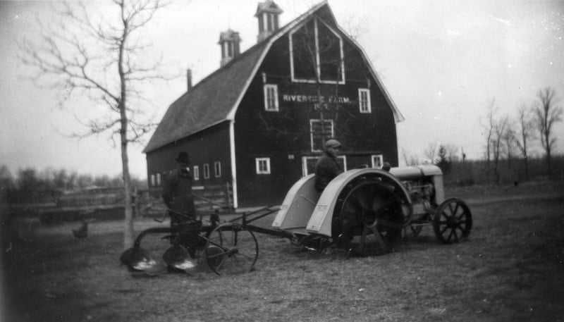 # 378 Gunderson Barn Gunder Gunderson standing & George with Fordson. River View Farm. Zoom & Pan